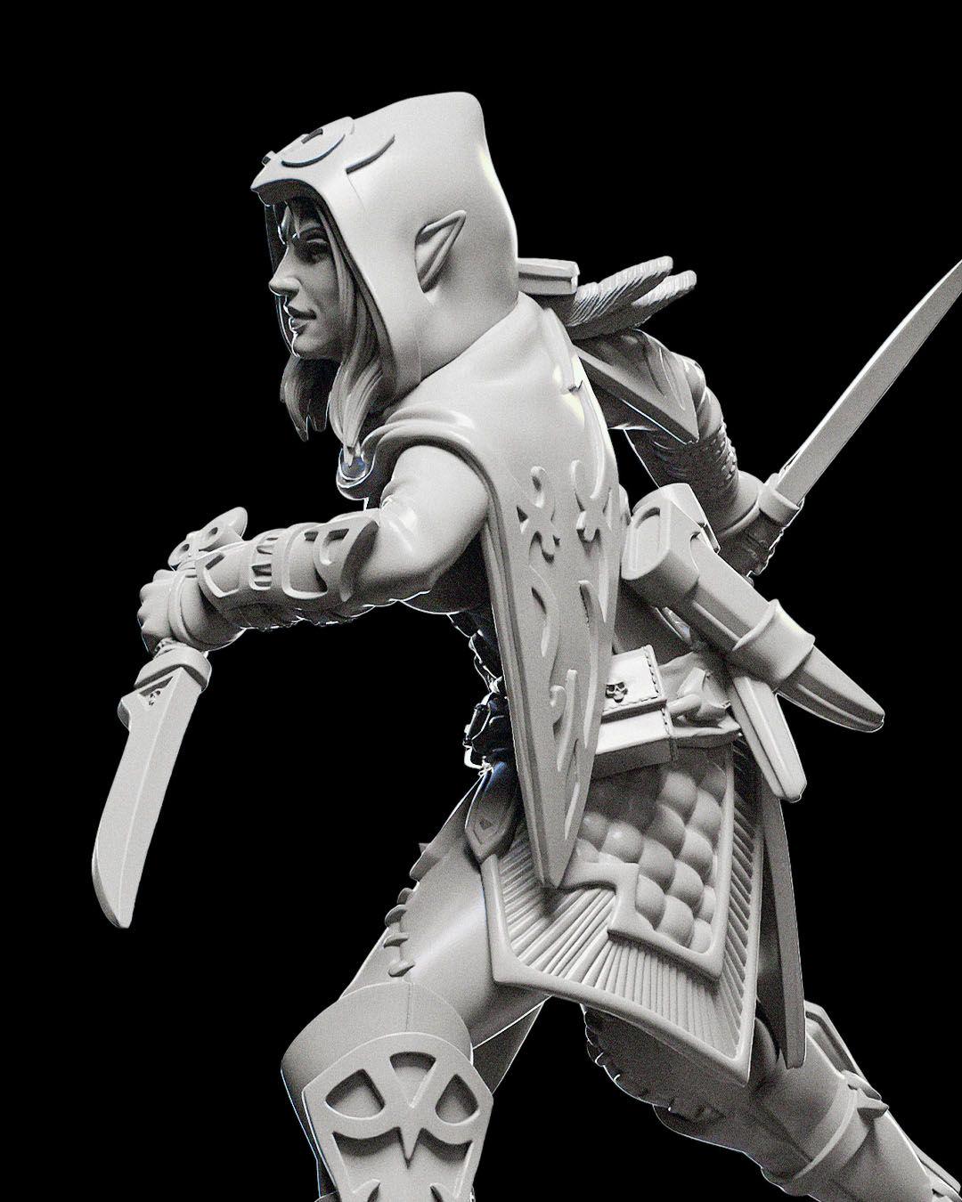 Half-Elf Rogue with Daggers RPG Model w/ base