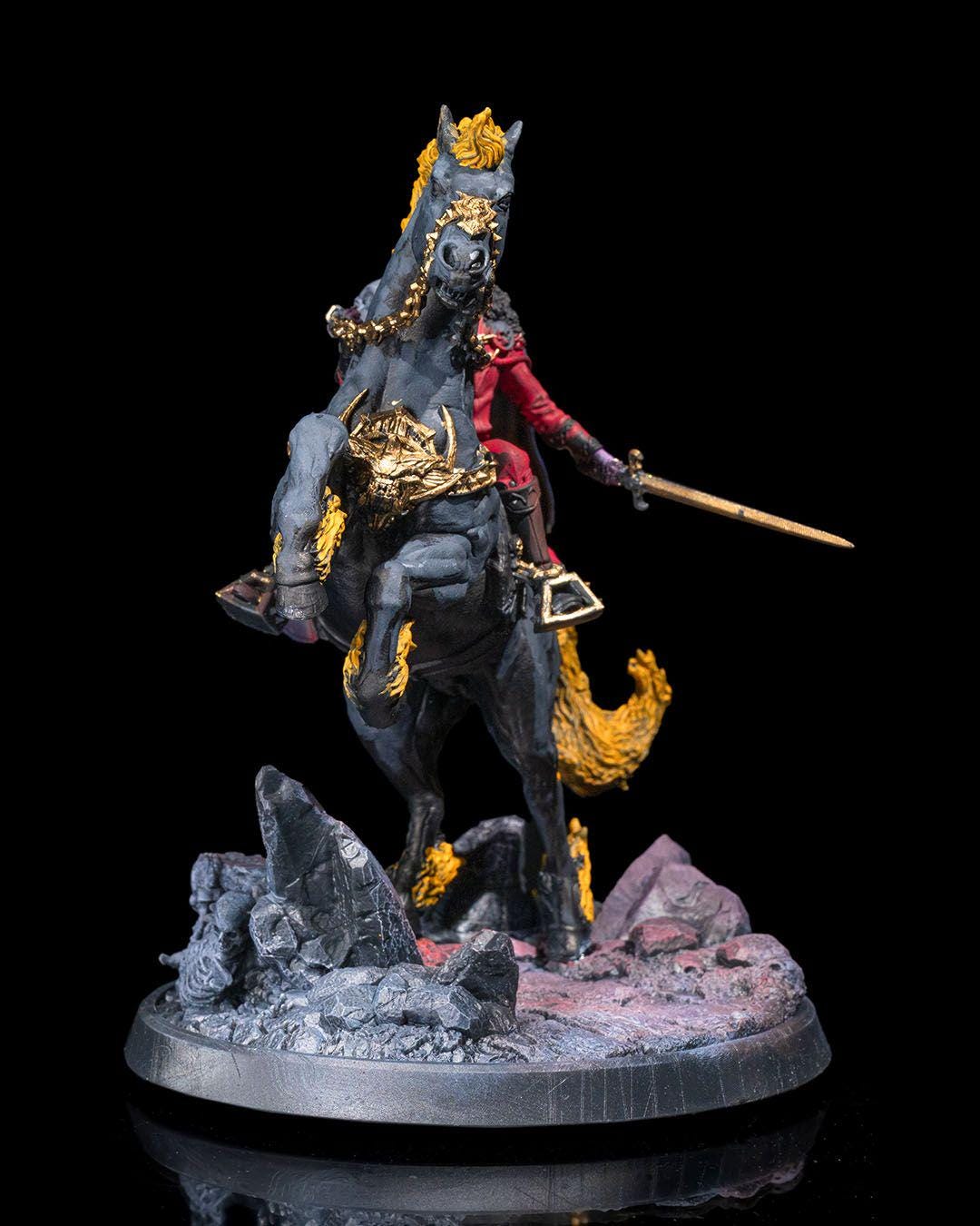 Dominate the battlefield with this Vampire Lord on Nightmare miniature! This stunningly detailed model captures the dark majesty of an undead ruler astride a fiery, spectral steed. Whether as a dreaded warlord, vampiric general, or legendary boss encounter, this figure will add a terrifying presence to your Dungeons & Dragons (D&D), Pathfinder, or other tabletop RPG campaigns.